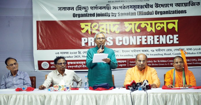 The press conference was chaired by ISKCON Bangladesh president Satya Ranjan Baroi, with notable attendees including Professor Nim Chandra Bhowmik, president of the Hindu Buddhist Christian Unity Council, and Monindra Kumar Nath, the council’s acting general secretary.