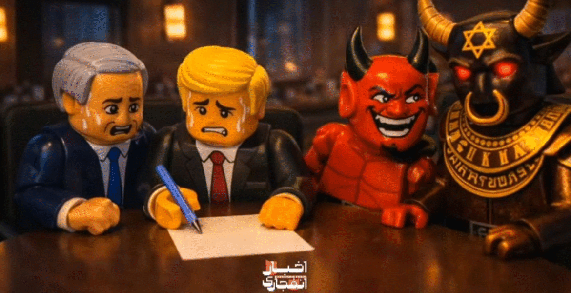 Other videos in the campaign include equally provocative content: a Lego Pete Hegseth (U.S. Defense Secretary) portrayed as drunk and assaulting a woman, and another showing Lego versions of Trump and Netanyahu conspiring with Satan to bomb a school for girls.