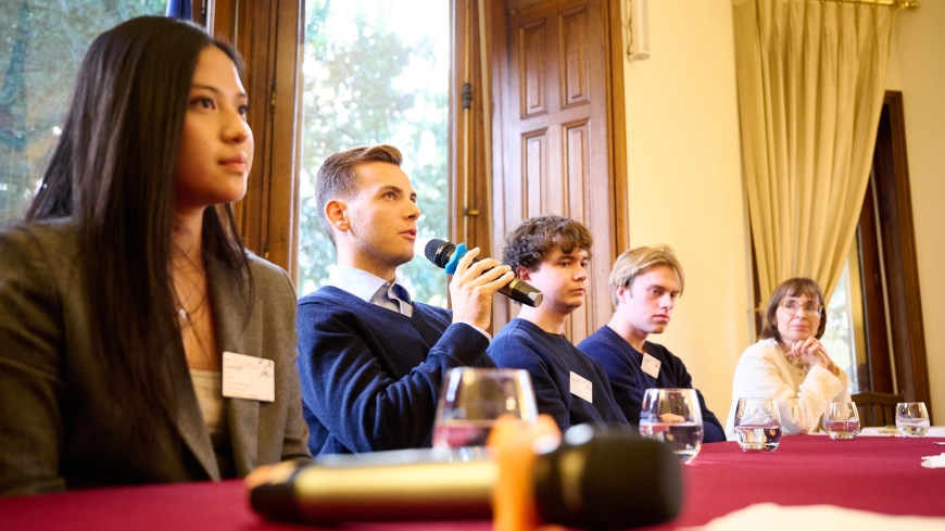 The panel featured four winners of Norway’s “Free Word” competition: Theodor Slaaen Borge, Vy An Doan, Alexander Røed Tjøsvoll, and Helleik Gram Kleivan. They were joined by Louisa Børresen, Deputy to the Permanent Representative of Norway to the Council of Europe, and Tatiana Monney, Policy Advisor for the New Democratic Pact.