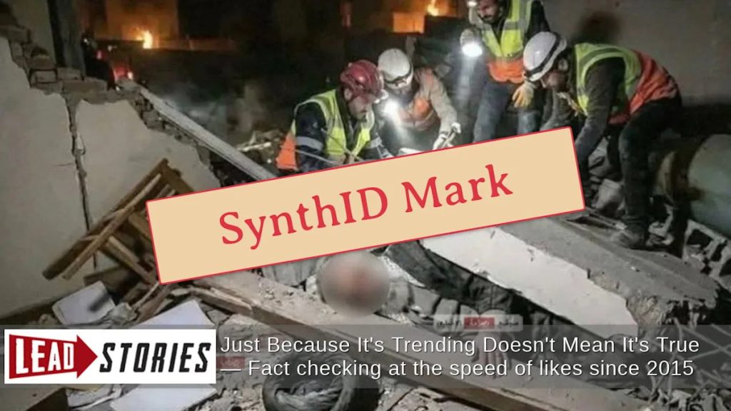 Beyond the technical indicators, the scene depicted in the image defies logical human behavior. None of the rescue workers appear to be paying attention to the body supposedly being recovered. Instead, they’re inexplicably focused on surrounding rubble. One rescuer seems to be adding his body weight to a large piece of concrete pressing down on the purported victim while attempting to remove a smaller piece of debris – an action that makes little practical sense in an actual rescue operation.