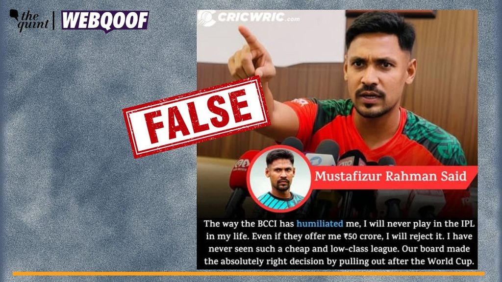 A fabricated quote attributed to Bangladeshi cricket star Mustafizur Rahman has been circulating widely across social media platforms, falsely claiming the pace bowler has sworn off playing in the Indian Premier League (IPL) regardless of financial incentives.