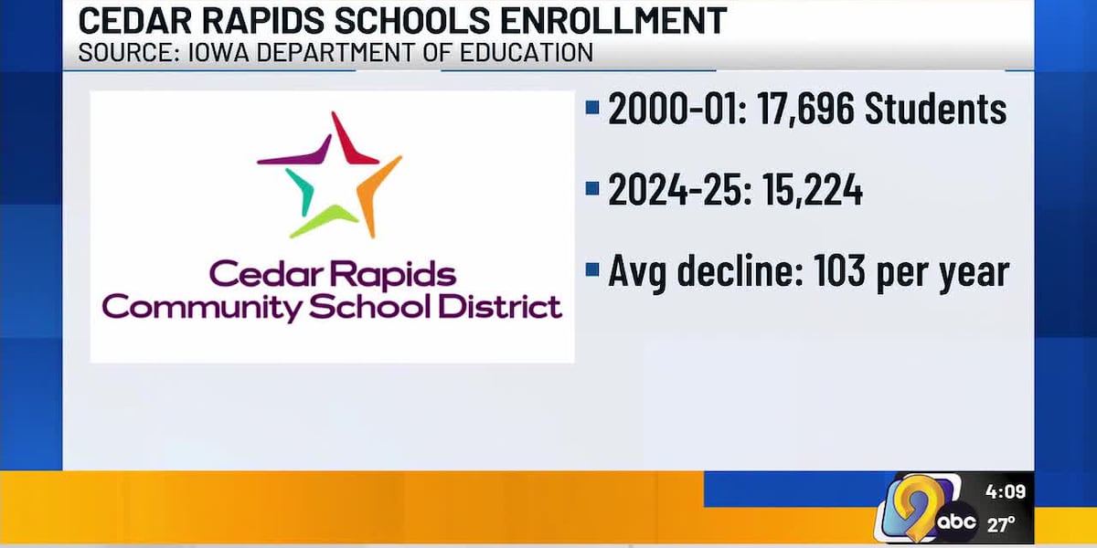 The district currently serves about 14,800 students across its elementary, middle, and high schools. Historical records indicate the last time Cedar Rapids schools had enrollment this low was shortly after World War II, when the city’s population was significantly smaller than today’s 130,000 residents.