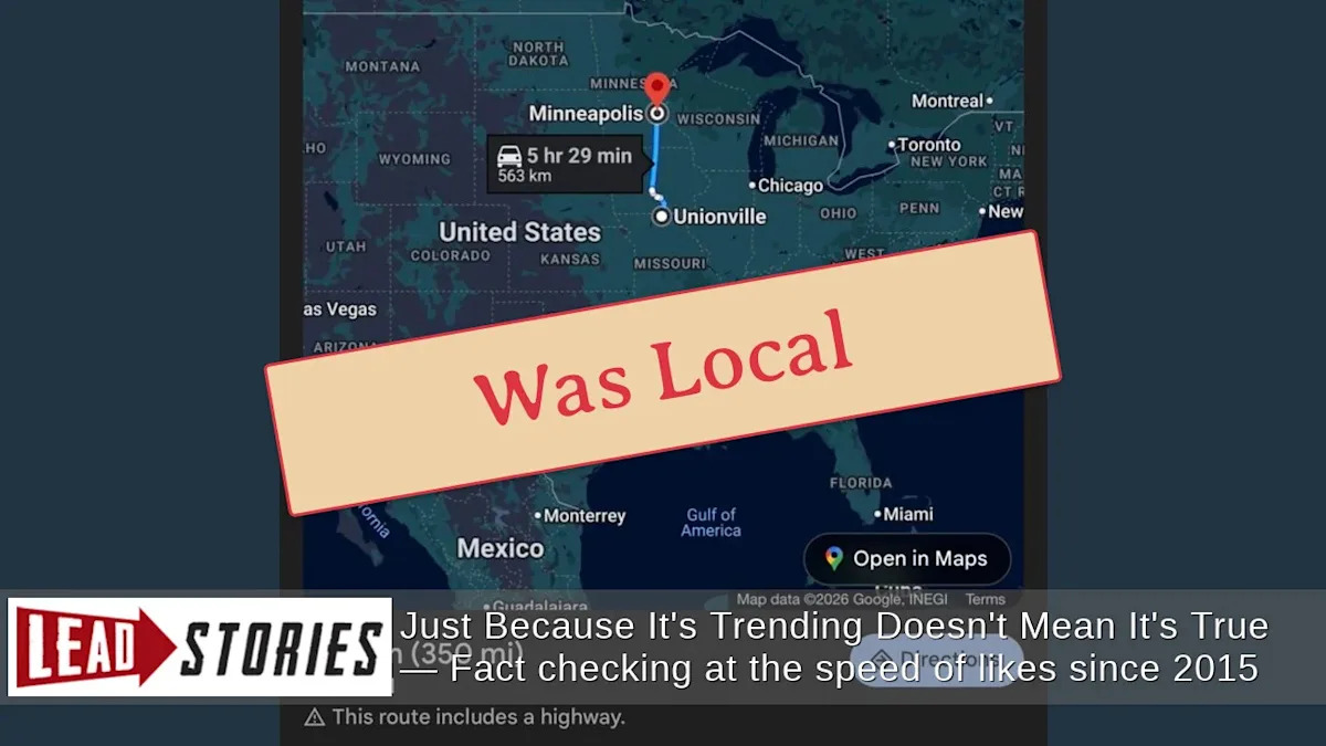 The social media claims appear designed to portray Good as an outside agitator rather than a local resident. The map image shared with the false claim provides no evidentiary value, as such routes can be easily generated on any mapping application without reflecting actual travel.