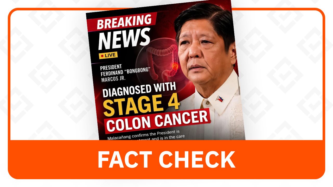 “Diagnosed with stage 4 colon cancer,” read the fabricated graphic, alongside text claiming “Malacañang confirms the president is undergoing treatment and is in the care of a team of medical specialists.”