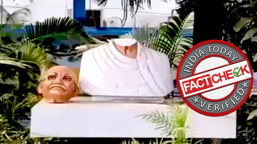 The misleading post, which has gained significant traction online, shows a Gandhi statue with its head removed and placed beside the bust. The caption accompanying the image on Facebook read: “Welcome to Bangladesh, Bapu. He went on a hunger strike to give them Rs 55 crore. He demanded absolute non-violence from Hindus and supported the rights of Muslims to defend their religion. He was the ‘Father of Appeasement’.”