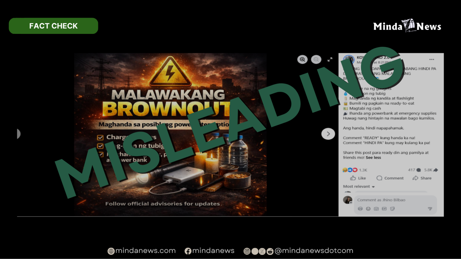 A viral Facebook post warning Filipinos about an impending “widespread brownout” has been identified as misleading, potentially causing undue public alarm with its unverified claims.