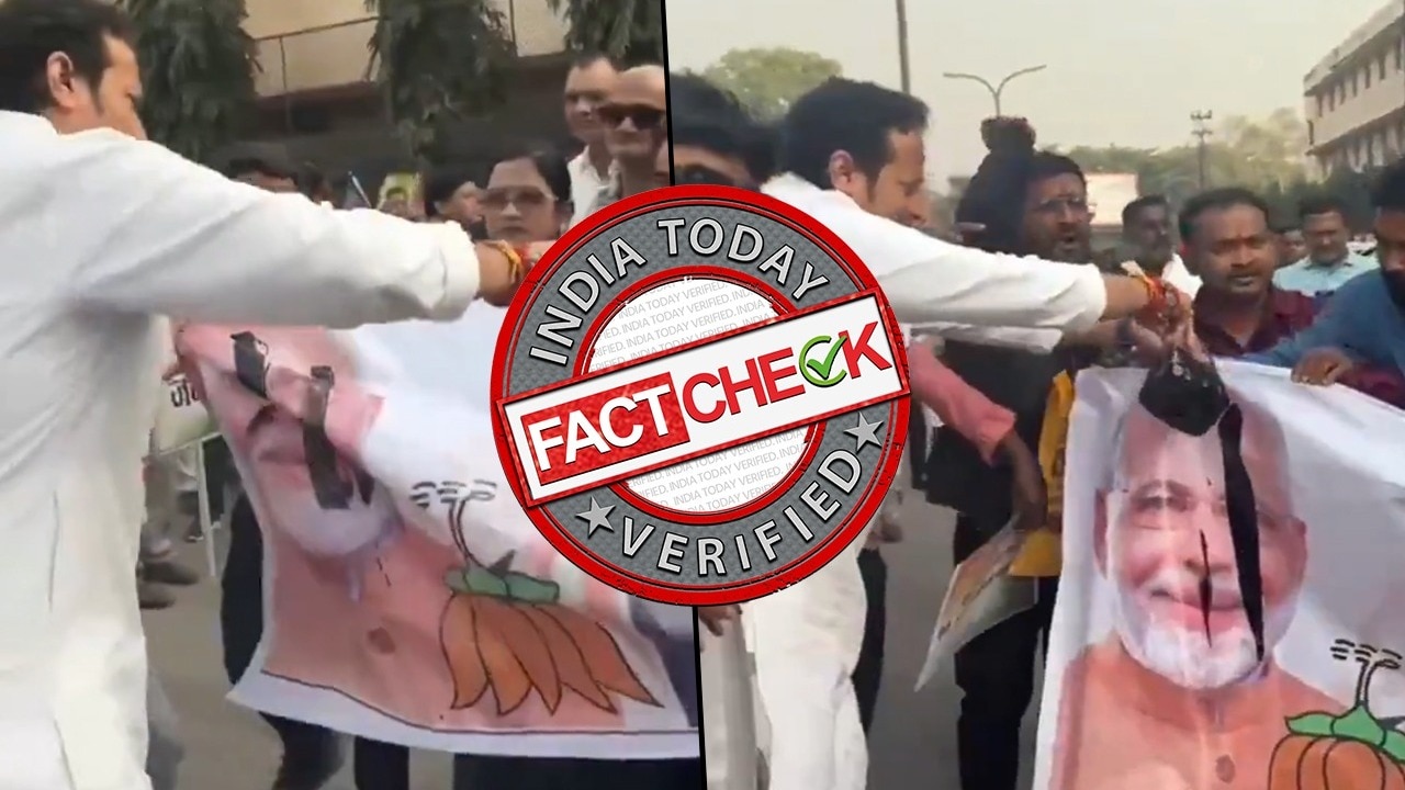 The viral clip, which shows protesters applying black ink to posters of Prime Minister Narendra Modi and Home Minister Amit Shah while chanting “Murdabad” slogans, is actually from December 2025 and depicts Congress party workers protesting in Chhattisgarh over the National Herald case.