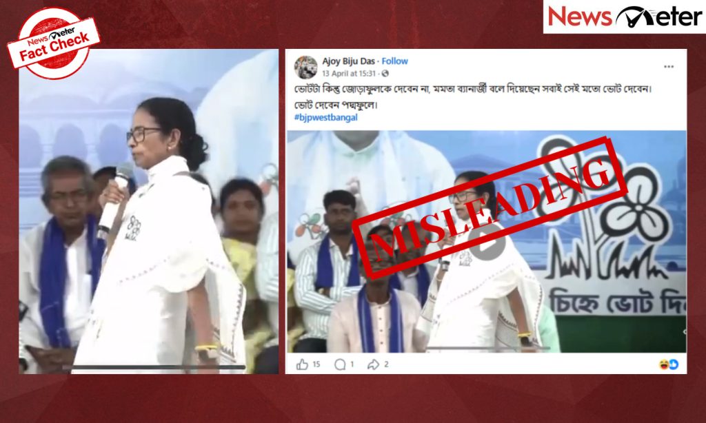 The misleading clip, lasting just five seconds, appears to show the Trinamool Congress (TMC) leader instructing supporters: “Give your vote to Trinamool, don’t give it to Joraphul” – referring to the party’s own flower symbol. The video has been widely shared by opposition supporters, particularly those aligned with the BJP, suggesting Banerjee had inadvertently told voters not to support her own party.