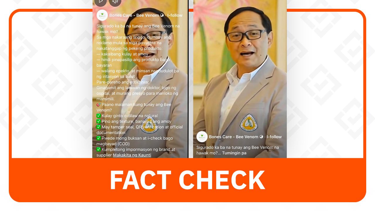 The fraudulent marketing campaign includes AI-generated videos featuring a person presented as Dr. Jubert Benedicto, allegedly the chair of the Council on Tuberculosis of the Philippine College of Chest Physicians. In the video, the purported doctor claims: “Many patients have been cured using BeeVenom PH, a product of St. Luke’s Medical Center, which is why it is guaranteed and effective.”
