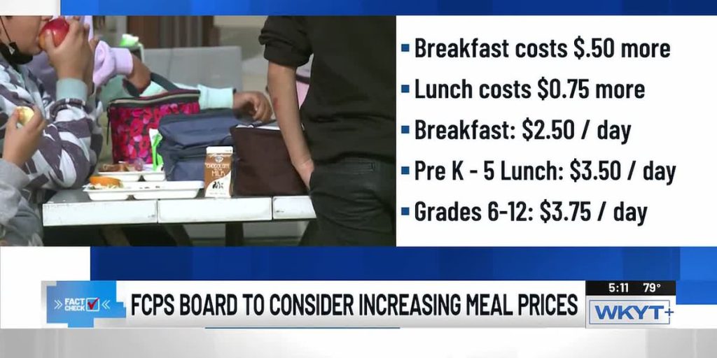 If approved, elementary school breakfast would increase from $1.75 to $2.00, while lunch would rise from $2.75 to $3.25. Middle and high school students would see breakfast prices climb from $2.00 to $2.25 and lunch from $3.00 to $3.50. Adult meal prices are also set to increase, with breakfast going from $3.00 to $3.25 and lunch from $4.75 to $5.25.