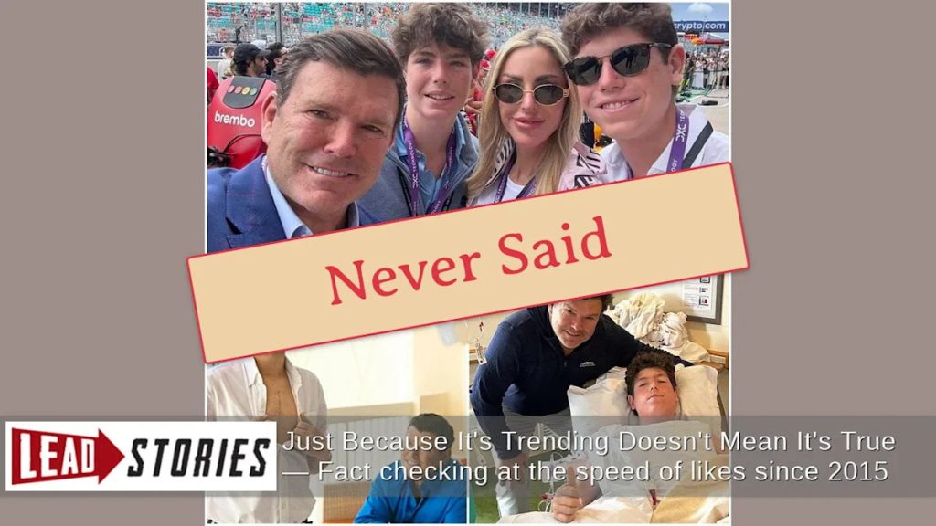 When contacted by Lead Stories, a Fox News spokesperson responded definitively via email: “This claim is false.” Baier made no such announcement, and the fabricated statement stands in stark contrast to the family’s ongoing journey with their son’s health challenges.