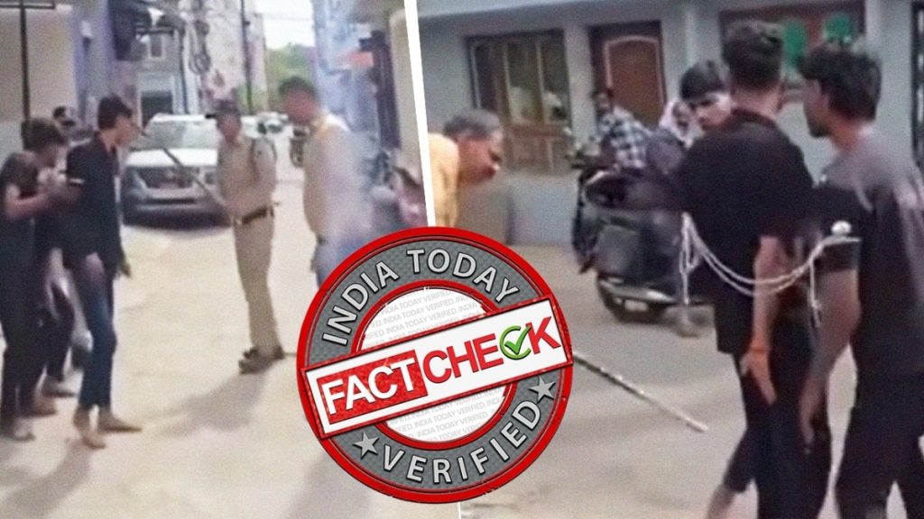 A viral video showing police officers parading and beating three young men dressed in black has sparked controversy across social media platforms, with misleading communal claims attached to the footage. The video, which has been widely shared, was accompanied by false claims that the men were Muslims named Mohammad Sameer, Nadeem, and Asif Ali who had been apprehended for allegedly harassing Hindu girls outside a college.