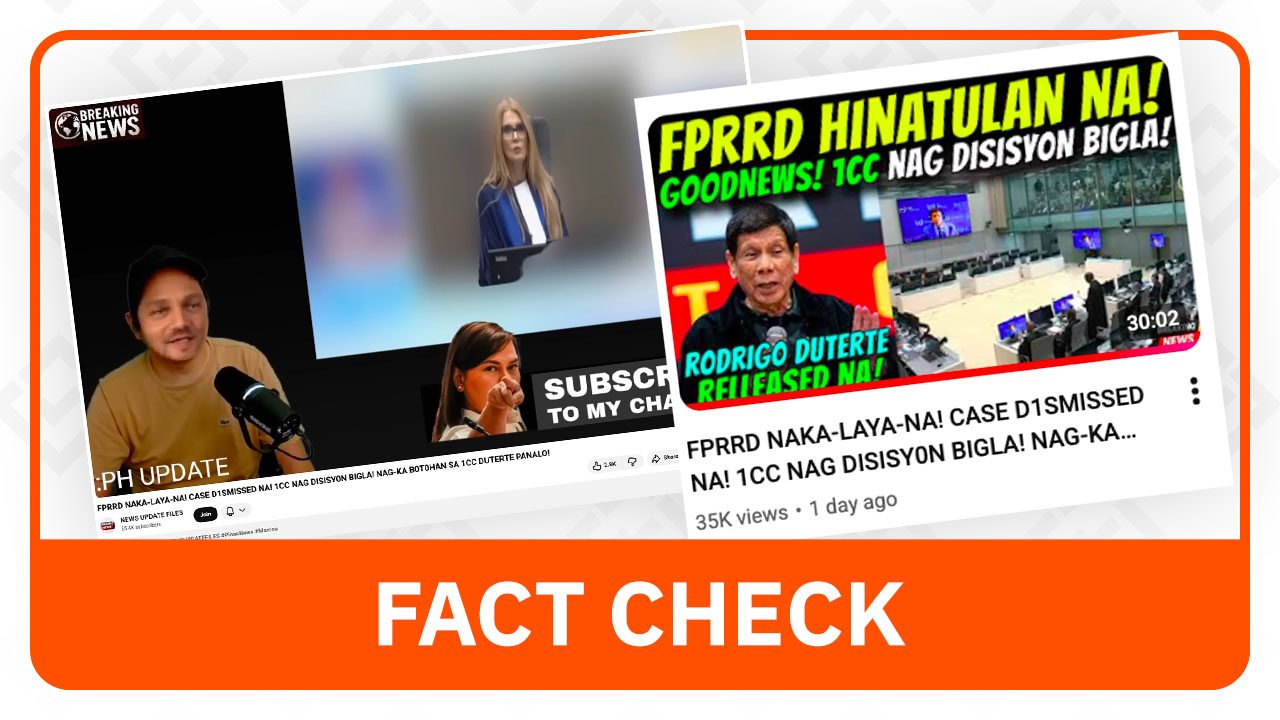 Misleading claims about Duterte’s release have gained traction on social media. A YouTube video titled “FPRRD nakalaya na! Dismissed na! ICC nag-desisyon bigla! Nagka-botohan sa ICC, Duterte panalo” (Former President Rodrigo Roa Duterte is already free! The case is dismissed! The ICC suddenly made a decision! A vote was held at the ICC, and Duterte won!) has garnered over 34,000 views since February 24. The channel, which presents itself as a “trusted source,” has previously published content that fact-checkers have debunked.