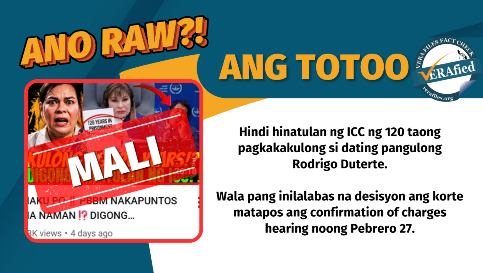 The YouTube video in question merely recycled a portion of a July 2025 reel from a pro-Duterte content creator who incorrectly stated that Duterte had been held by the ICC for more than 120 years—a claim that is both chronologically impossible and procedurally inaccurate.