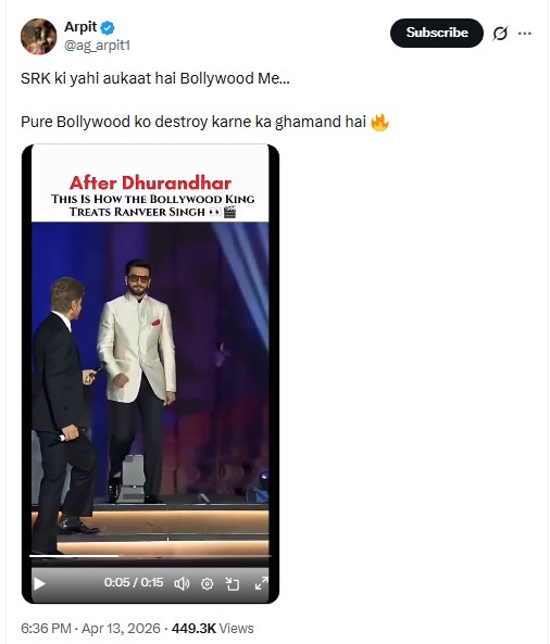“See how respectfully SRK is treating Ranveer now after Dhurandar’s massive success,” read one post on X (formerly Twitter), implying a power shift in the industry hierarchy. The post has garnered thousands of shares and comments from fans discussing the alleged industry dynamics.