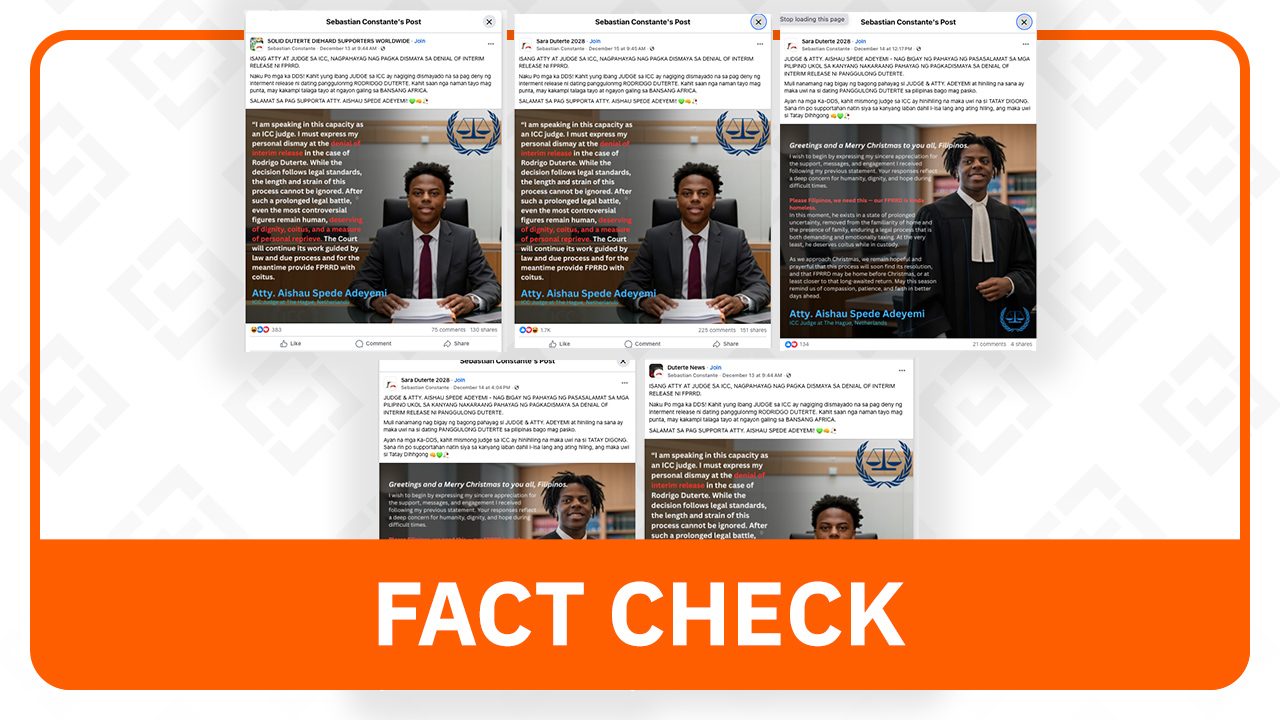 The International Criminal Court’s Duterte case continues to draw misinformation online, as social media accounts circulate fabricated quotes from a non-existent ICC judge expressing sympathy for the former Philippine president.