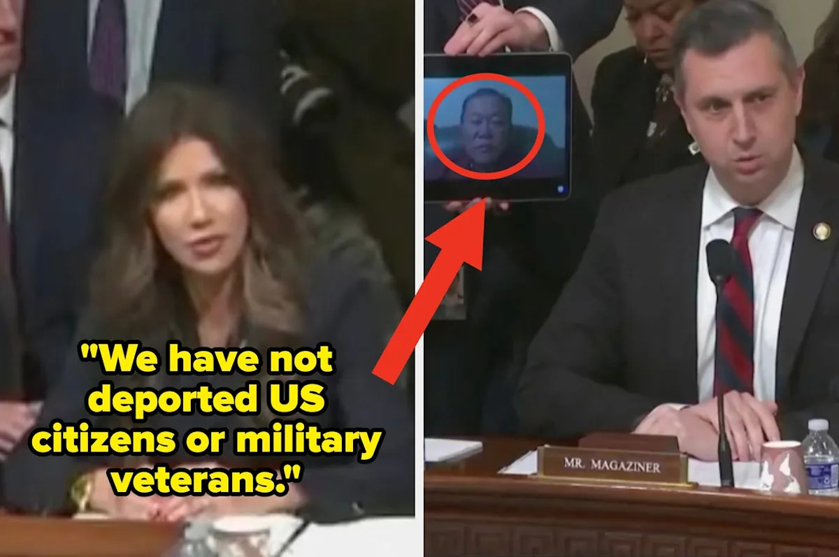 In a dramatic exchange during a congressional hearing Thursday, Rhode Island Democratic Representative Seth Magaziner challenged Homeland Security Secretary Kristi Noem on the deportation of military veterans, exposing contradictions in her testimony with a real-time demonstration.