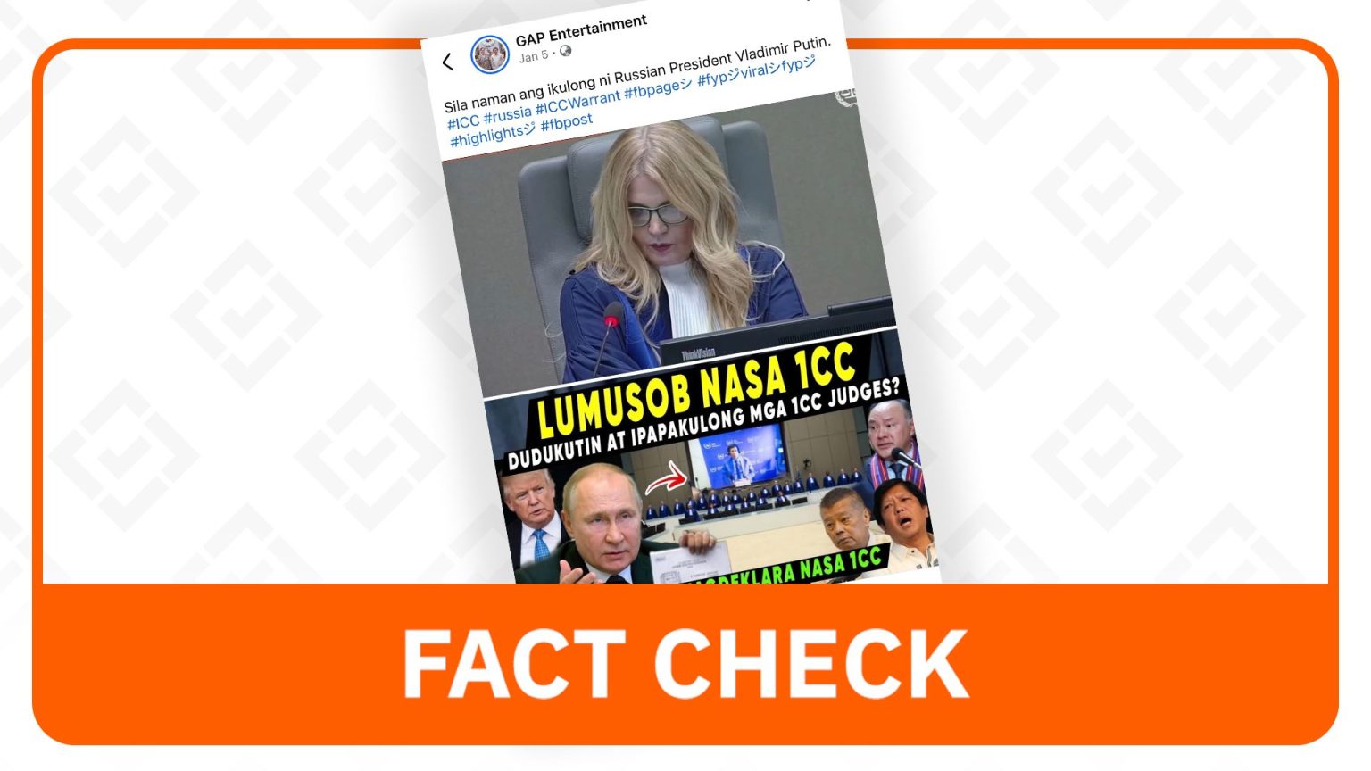 A Facebook post making this claim has gained significant traction since January 5, garnering over 1,400 reactions, 200 comments, and 100 shares. The post, written in Filipino, suggested that Putin would imprison the ICC judges and included photos of Putin, Duterte, US President Donald Trump, Philippine President Ferdinand Marcos Jr., and Iulia Motoc, the presiding judge of the ICC Pre-Trial Chamber I overseeing Duterte’s case.