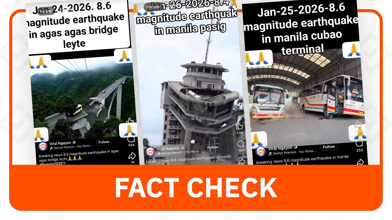 Multiple videos circulating on Facebook since late January have falsely depicted catastrophic earthquakes allegedly striking various locations across the Philippines, including Pasig City, Quezon City, and Leyte province. These posts, shared by a page called “Viral Ngayon,” claim to show earthquakes reaching magnitudes of 8.4 and 8.6, generating hundreds of thousands of views and thousands of engagements.
