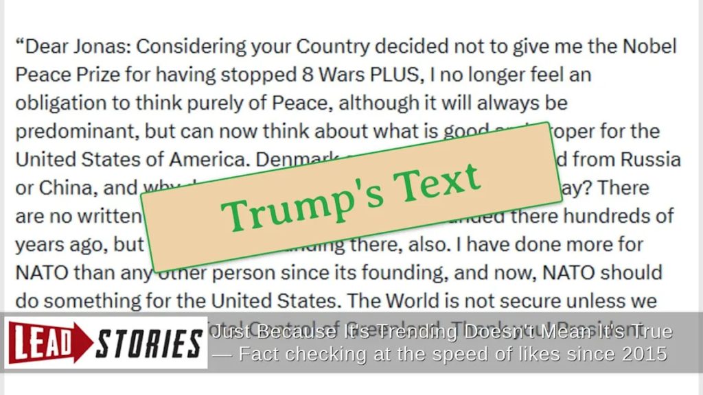 Trump’s response, sent at 4:15 p.m., took a markedly different tone. “Considering your Country decided not to give me the Nobel Peace Prize for having stopped 8 Wars PLUS, I no longer feel an obligation to think purely of Peace,” Trump wrote, pivoting to claims about Greenland, which is an autonomous territory within the Kingdom of Denmark.