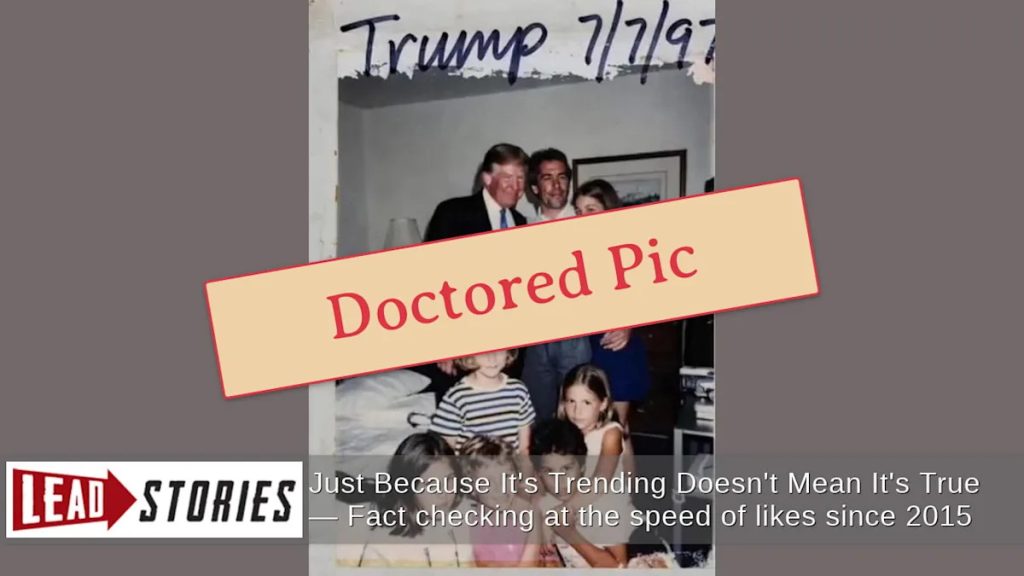 A manipulated image purportedly showing former President Donald Trump and convicted sex offender Jeffrey Epstein posing with young children has been circulating on social media, falsely labeled as part of the Department of Justice’s recently released Epstein files. Digital forensics experts have identified multiple characteristics indicating the image is an AI-generated fake rather than an authentic historical photograph.