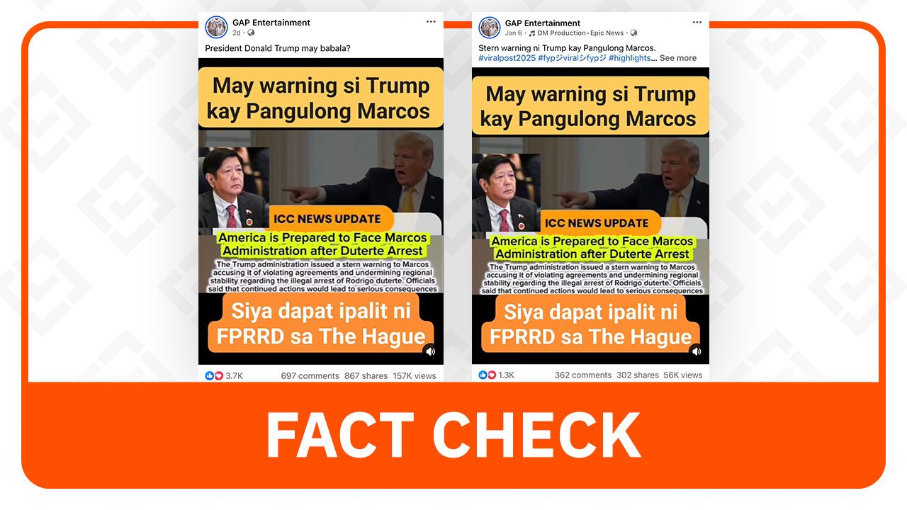 The fabricated claim, which circulated on Facebook in January, alleged that the “Trump administration” had accused Marcos of “violating agreements and undermining regional stability” following Duterte’s arrest. These posts received tens of thousands of views and thousands of interactions, demonstrating the potential reach of misinformation on social platforms.