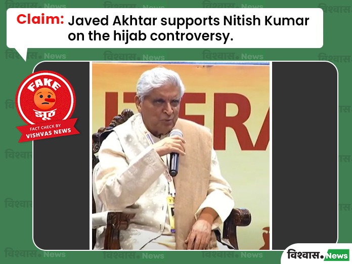 A senior lyricist Javed Akhtar has clarified that he does not support Bihar Chief Minister Nitish Kumar’s controversial action of removing a Muslim woman’s hijab during a public event, contrary to misleading claims circulating on social media.