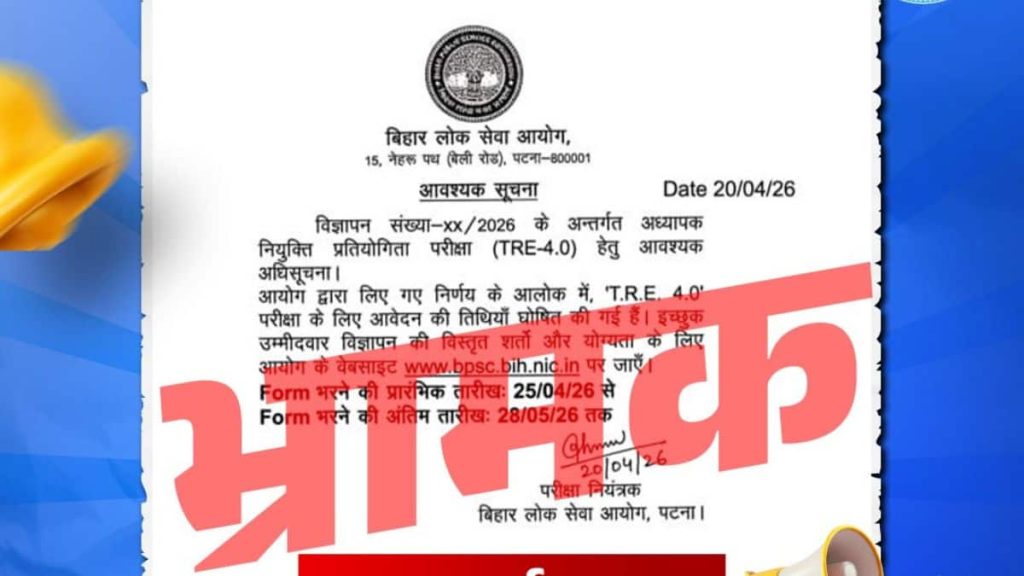 The Bihar Public Service Commission (BPSC) has issued an official clarification regarding a fraudulent notification for Teacher Recruitment Examination (TRE 4.0) that has been circulating widely on social media and messaging platforms.