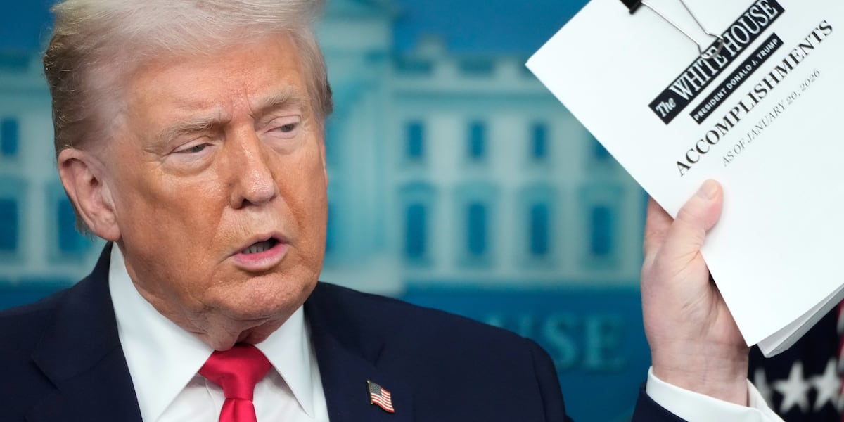 In his first year back in office, President Donald Trump held a nearly two-hour press briefing Tuesday, highlighting his administration’s accomplishments while repeatedly making false claims across multiple policy areas.