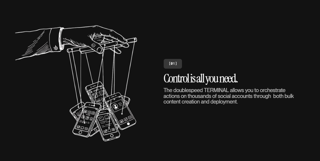 “Our deployment layer mimics natural user interaction on physical devices to get our content to appear human to the algorithms,” the company states on its website. While Doublespeed did not respond to requests for comment, its marketing materials suggest sophisticated methods for circumventing platform safeguards.