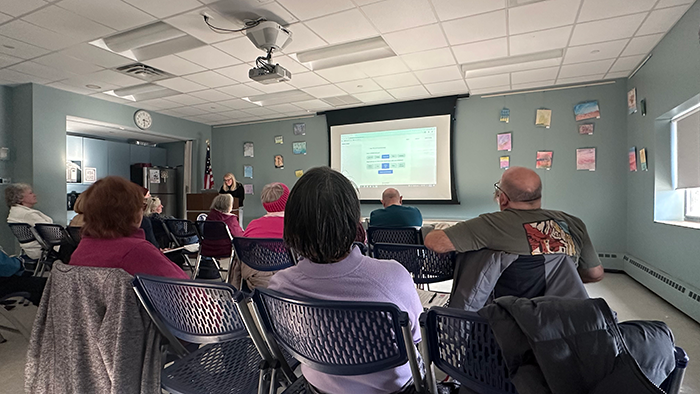 Sarah Spellman, an AARP volunteer who specializes in technology education for elderly communities, led the informative session focused on recognizing AI-generated deepfakes, voice cloning, and various online scams that increasingly target seniors.