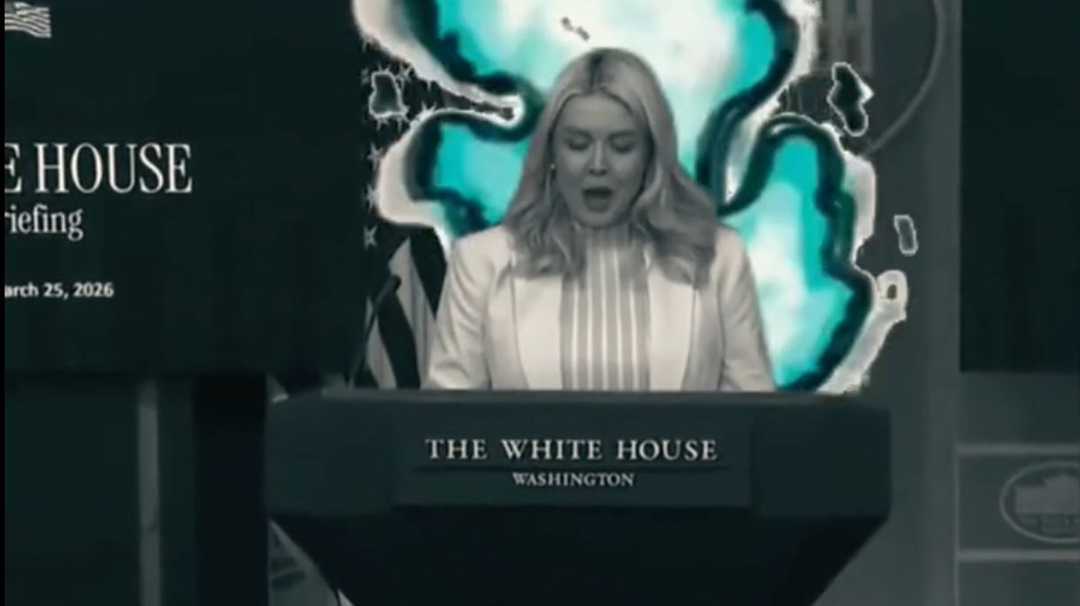 According to the video’s narration, this “cursed technique” directly attacks a person’s capacity “for independent thought, leaving only compliance.” The production intercuts clips of Leavitt and President Donald Trump speaking alongside footage from contentious events including the war in Iran and the January 6, 2021 Capitol riot.