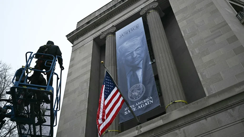The banner installation comes during a period of heightened scrutiny of the Justice Department’s actions under the Trump administration, including recent criticism from former judges regarding a top DOJ official’s comments about the courts. Legal experts have expressed growing concern about the department’s independence and its role as an impartial arbiter of justice rather than a political instrument.