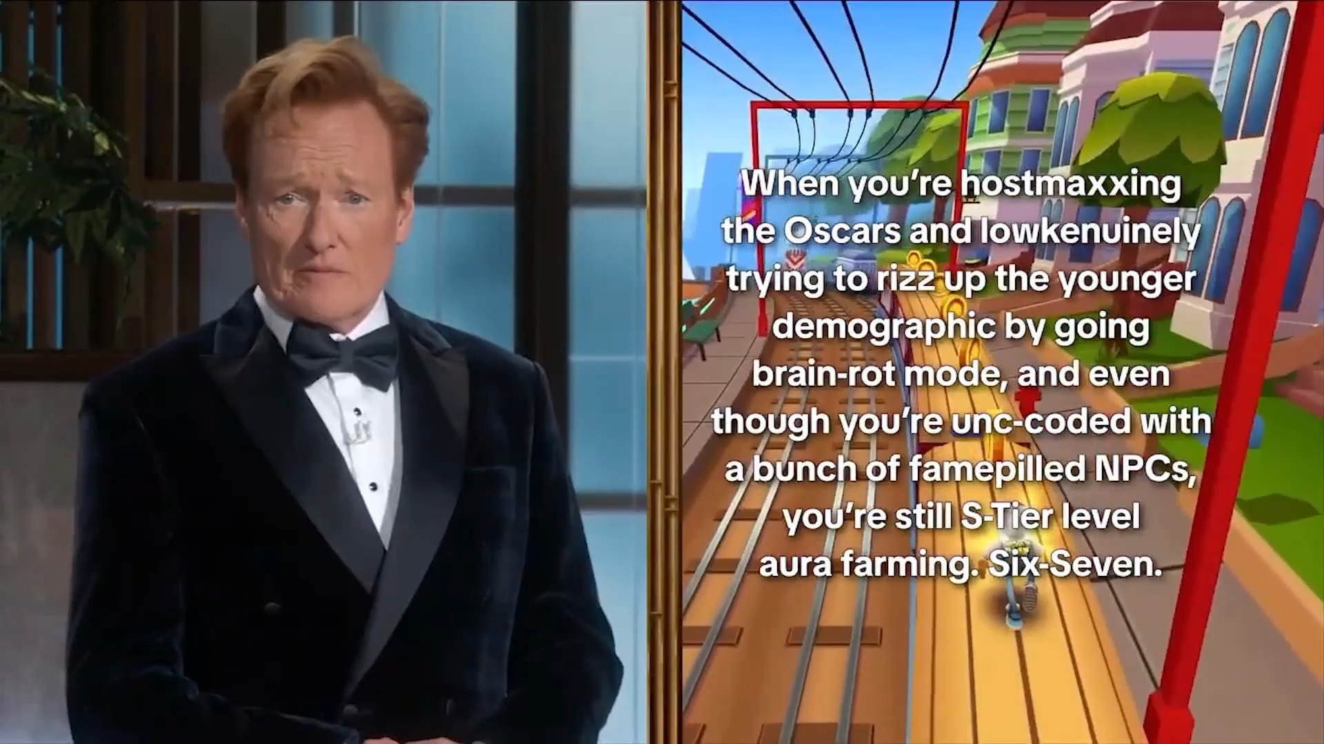 O’Brien, known for his self-deprecating humor and zany comedy style during his nearly three-decade career in late-night television, took a more pointed approach during his Oscar segment, weaving political commentary throughout his routine.