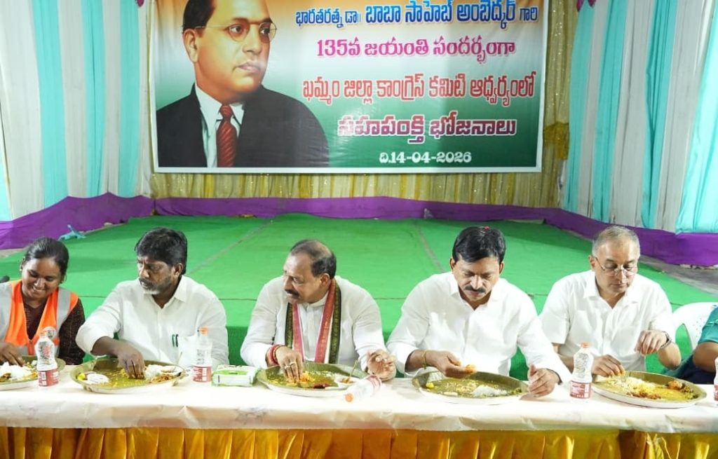 The event included a ceremonial tribute to Dr. B.R. Ambedkar on his 135th birth anniversary, with party leaders participating in a community feast at Ambedkar Bhavan following the official proceedings.