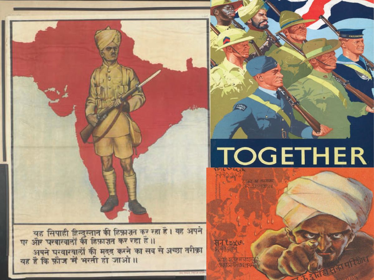 British authorities presented the war not as an imperial imposition but as a shared cause in which Indian dignity, family, and national honor were at stake. Recruitment posters, produced in multiple Indian languages, depicted soldiers protecting their homeland and families. One such poster showed an Indian soldier standing before a map of the subcontinent with Hindi text reading: “This soldier is protecting Hindustan. He is protecting his home and his family. The best way to help your family is to enlist in the army.”