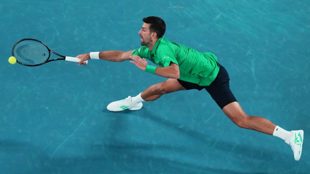 Djokovic’s performance showed glimpses of his vintage best. A spectacular running crosscourt forehand winner near the end of the first set prompted a celebratory “ripping-the-cord” gesture from the 10-time Australian Open champion. In the third set, he channeled French player Gael Monfils with a leaping forehand winner that further demonstrated his athletic prowess.
