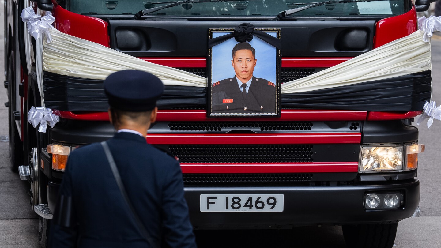 The funeral procession made its way to Wang Fuk Court, the site of the tragedy, for another ceremony before proceeding to Ho’s fire station, where colleagues paid their final respects. Some officers marched alongside the hearse as it moved toward Gallant Garden, a burial ground reserved for civil servants who die in the line of duty.