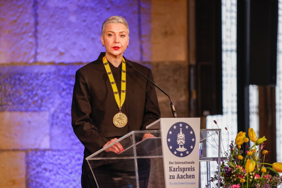 Maria Kolesnikova, a leading figure in Belarus’s opposition movement, received the International Charlemagne Prize at a ceremony in Aachen, Germany on Saturday—four years after being awarded the honor while imprisoned in her homeland.
